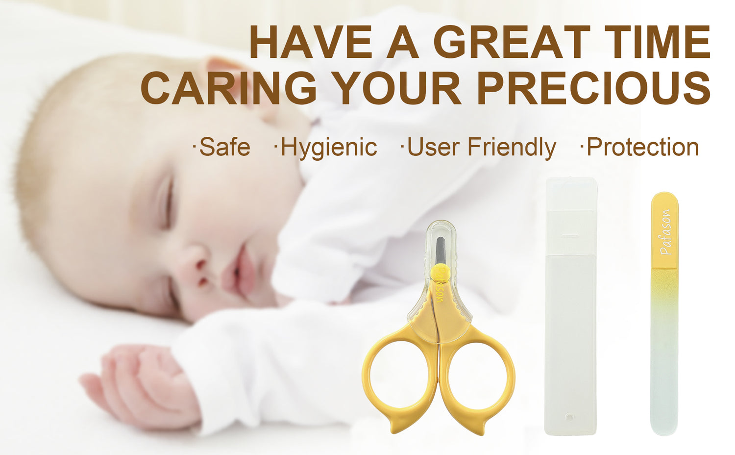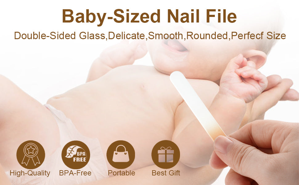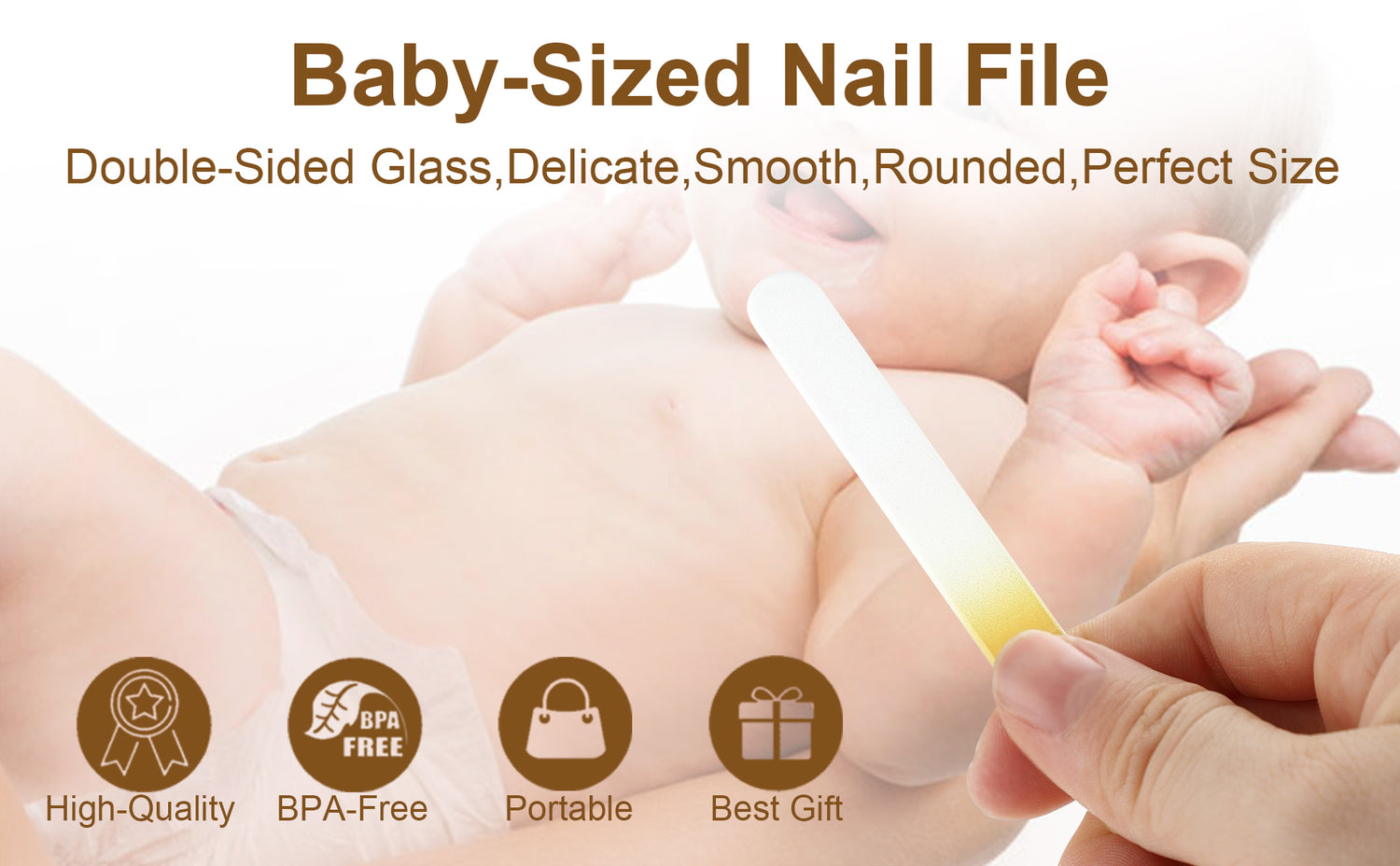 - Feature - Finger loops with ergonomic design for comfortable to grip and easy to use. This baby scissor works better than nail clipper because there is little room between baby's skin and nails. Nail clippers block out the sight, and could accidently cuts the skin. Nail file is the easiest and safest way to keep your baby's nails blunt after using nail scissor. This baby glass nail file is safe to touch, delicate, smooth and rounded. No sharp or pointy edges.
