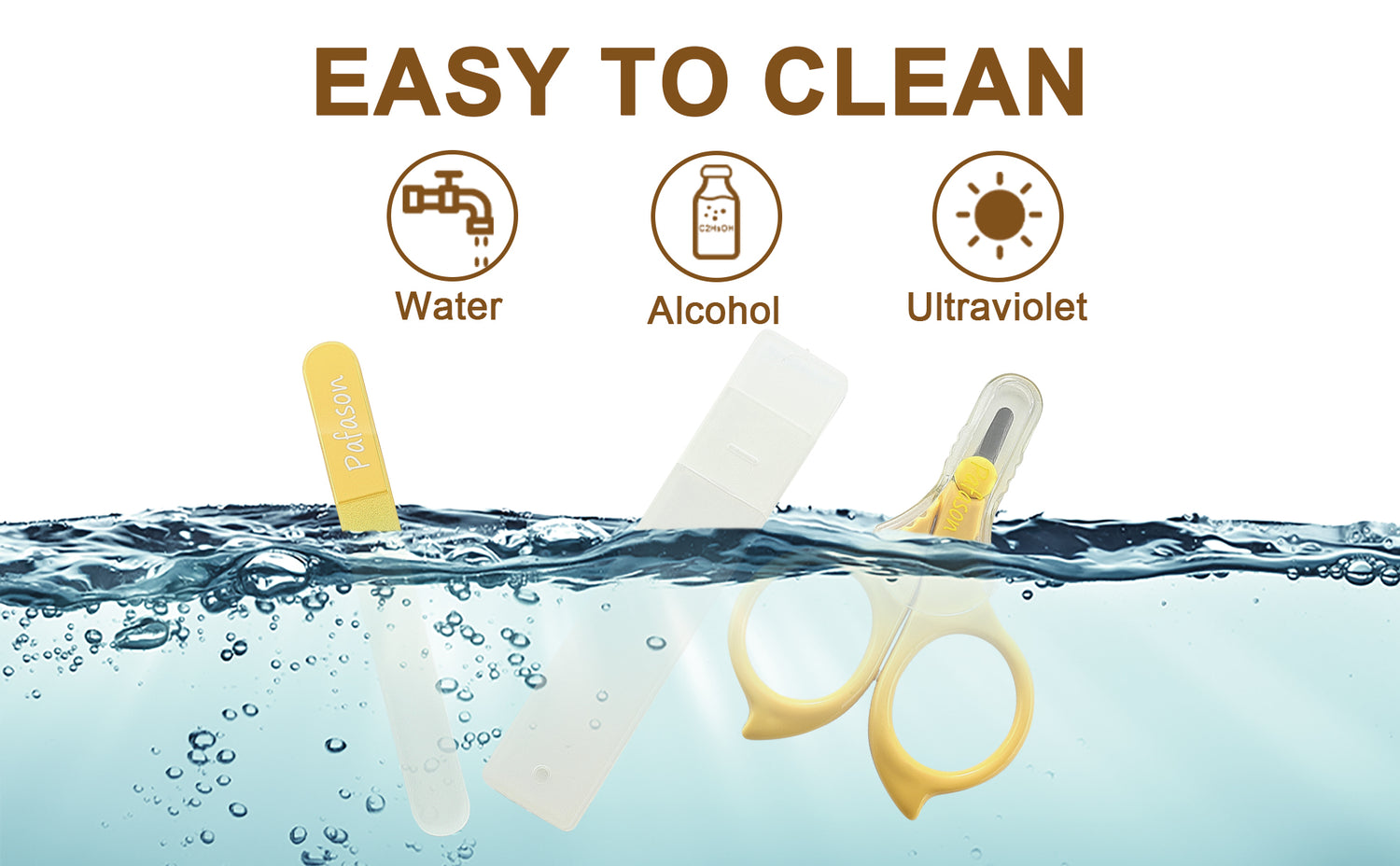 - Material - This baby nail scissor is made of rustproof stainlesss steel and BPA free plastic. Both materials pass SGS and ROHS tests. There will be no harm to baby' skin, also providing long-lasting performance. The baby glass nail file is made from Genuine Czech Float Glass of the finest quality that unlike traditional nail files are extremely long lasting & not easy to break, no need to replace frequently like other nail files.