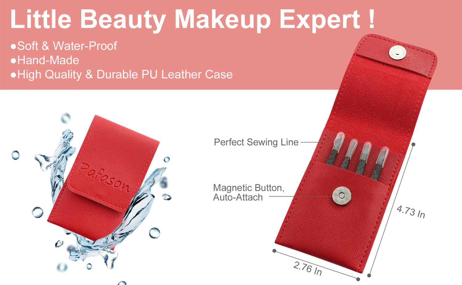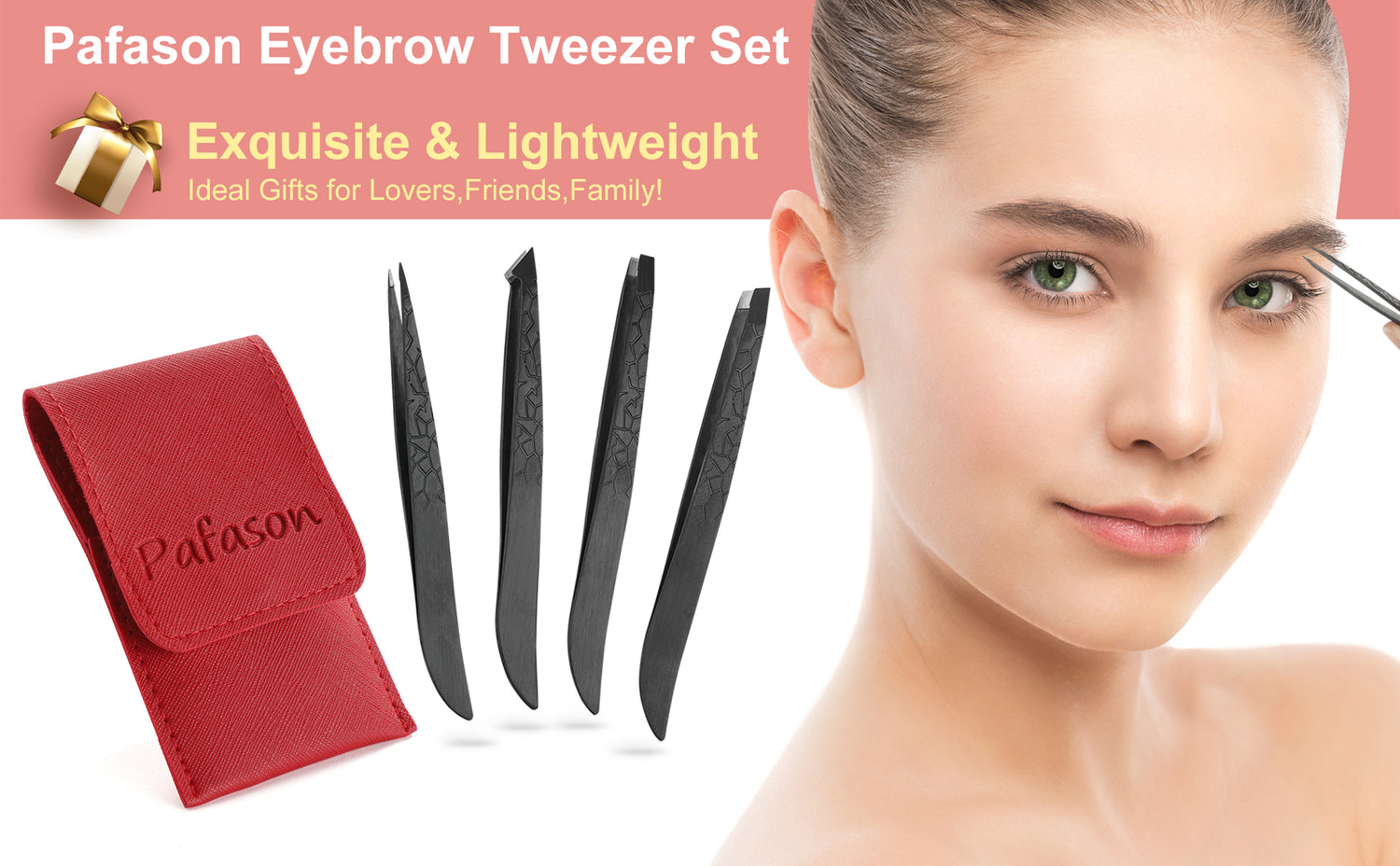 PAFASON® Eyebrow Tweezers Set with Premium PU Leather Travel Case-Professional Stainless Steel & High Precision Tweezer Kit for Eyebrow Facial Hair Removal Ingrown Hair Splinter Eyelash for Women & Men