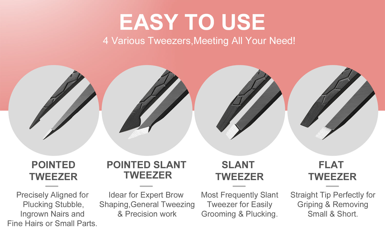 - MULTI - FUNCTION - 4 in 1 Set, This set contains a pair of classic, slant, pointed, and pointed slant tweezers. Perfect choice to handle a variety of jobs.