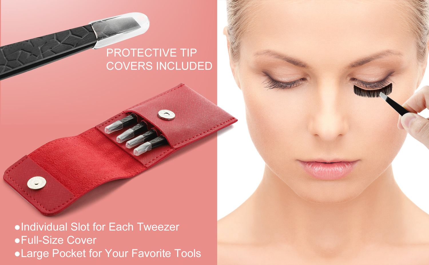 - HIGH QUALITY - This is made up of four different functional tweezers combined in a fine travel leather holster;Each product enjoys excellent service.