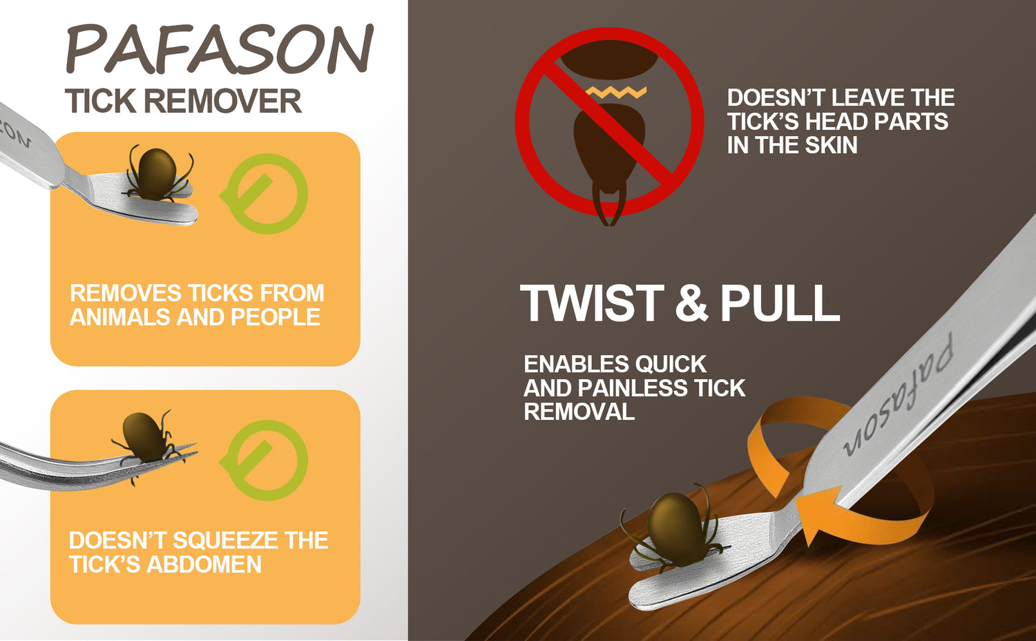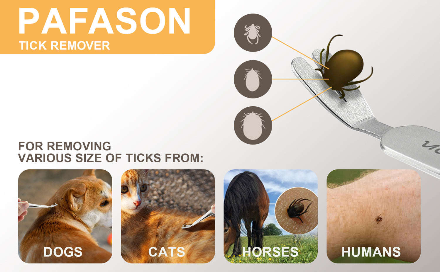 - Pafason dual-sided tick-removal tweezer set enables you to remove ticks from people, dogs, cats and all other pets with just one tool set. They are specially designed to remove the entire tick- head and reducing risk of spread of infection - in line with CDC guidelines. The ultra-fine-tip tweezers can be used to precisely remove tiny ticks.
