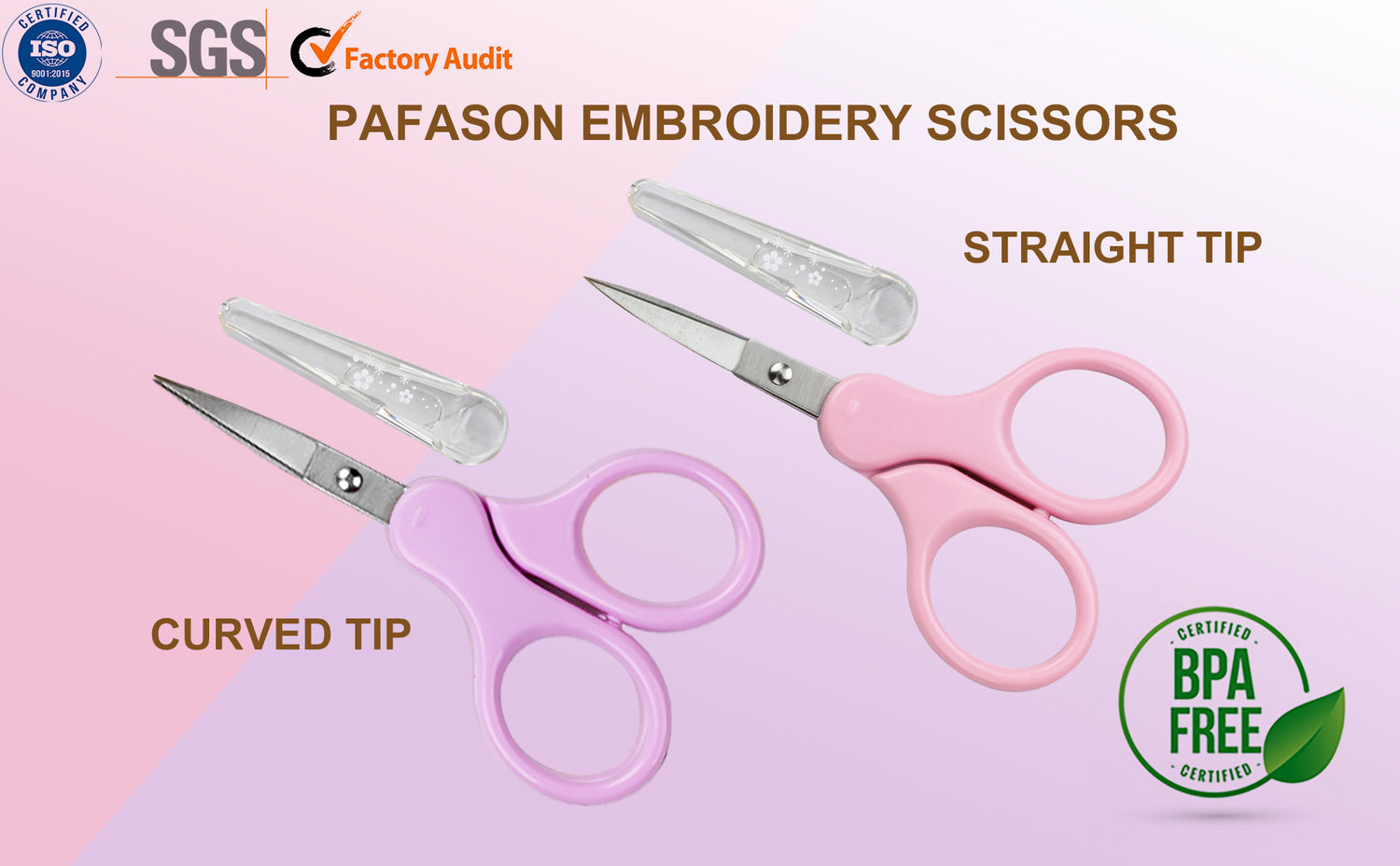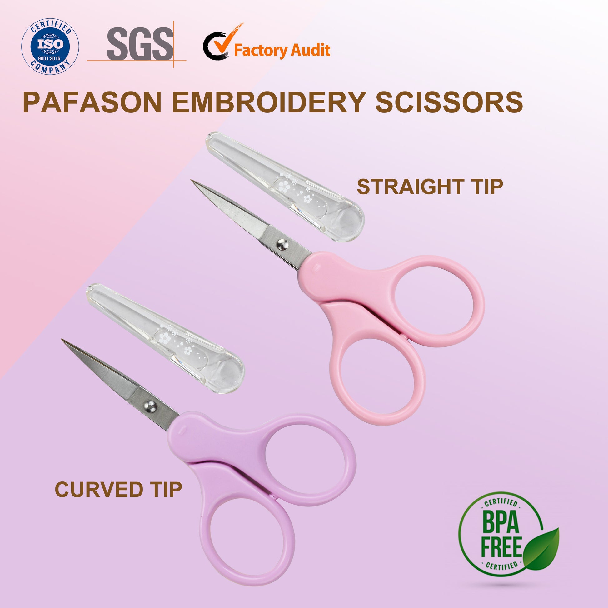 PAFASON® 3.5" Stainless Steel Curved & Straight Embroidery Detail Scissors Set with Protective Cover Perfect for Thread Cutting Yarn Quilting Sewing Knitting Crafting Needle Work Cross Stitch Crochet