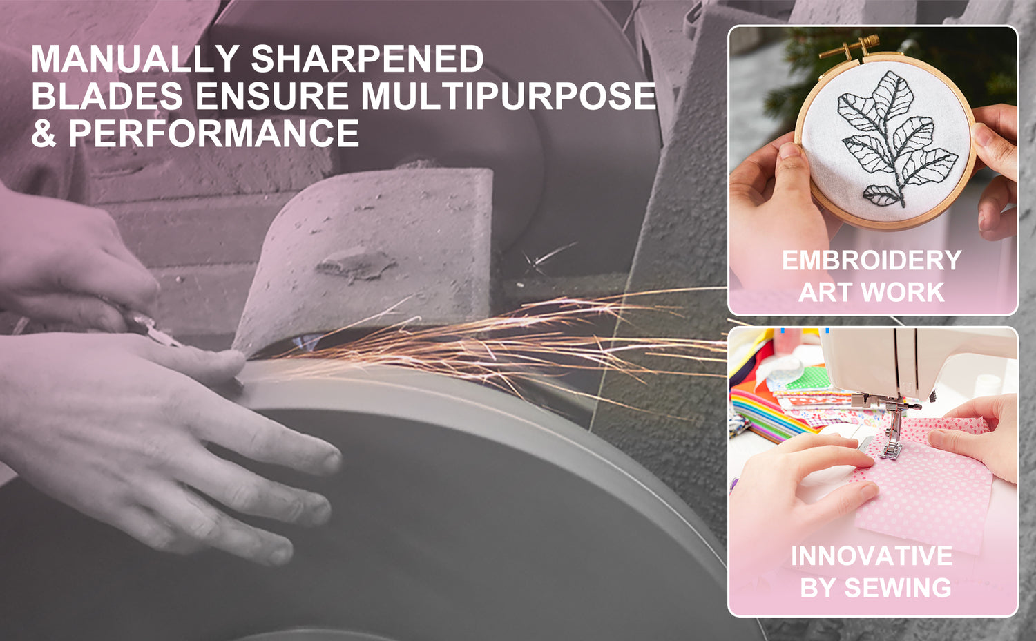 - Multipurpose – The crafting scissor set comes with two scissors. The pink one has straight point tip and the purple one has curved point tip, which are great for paper cutting, scrapbooking, and fine detail work, or art work.