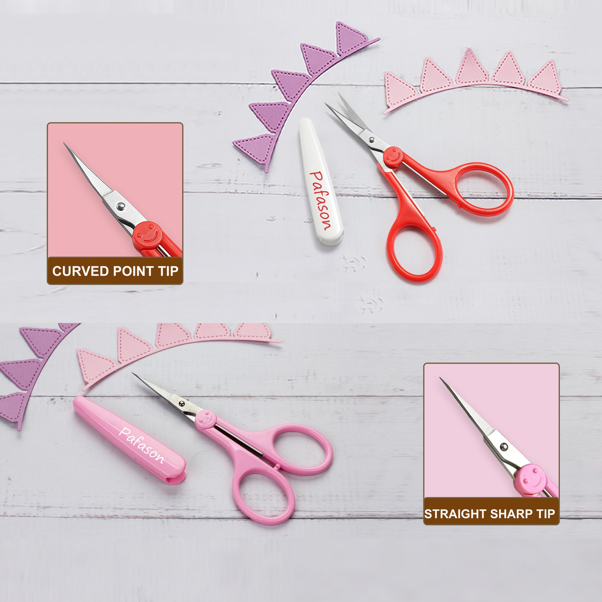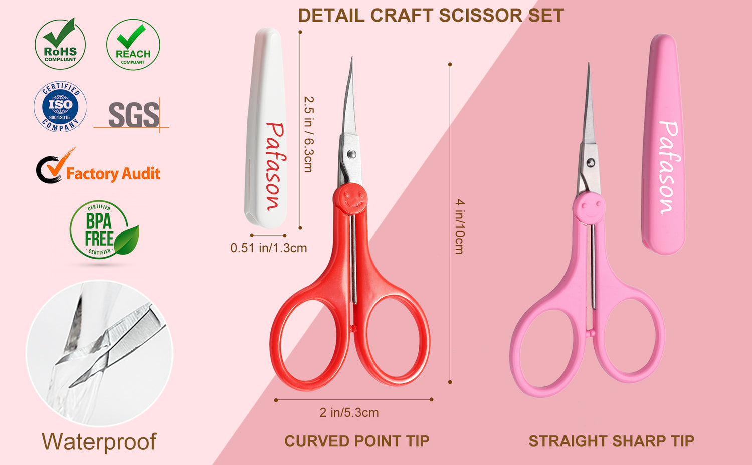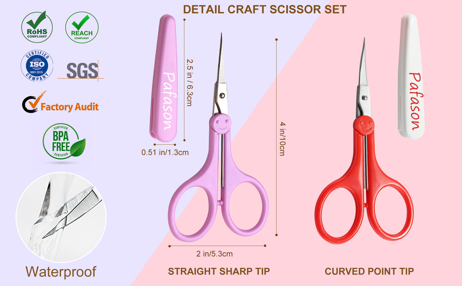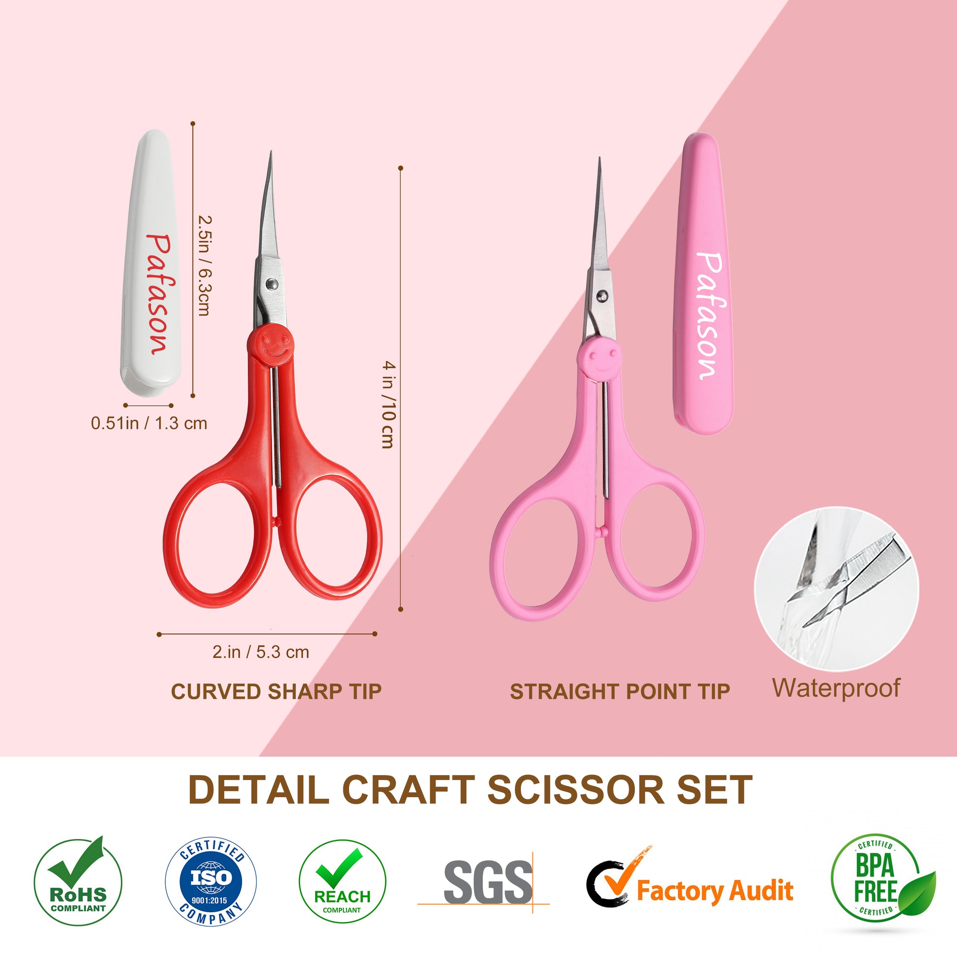 PAFASON 4" Stainless Steel Detail Craft Scissors Set with Straight & Curved Precise Tips & TSA Complied Ideal for Scrapbooking, Paper Yarn Thread Fabric Cutting Sewing Quilting Embroidery Knitting