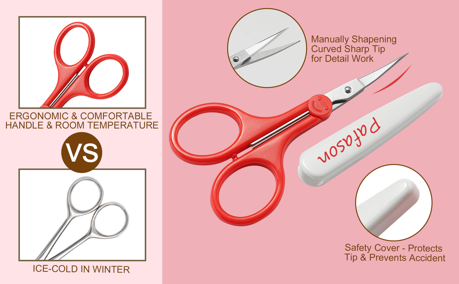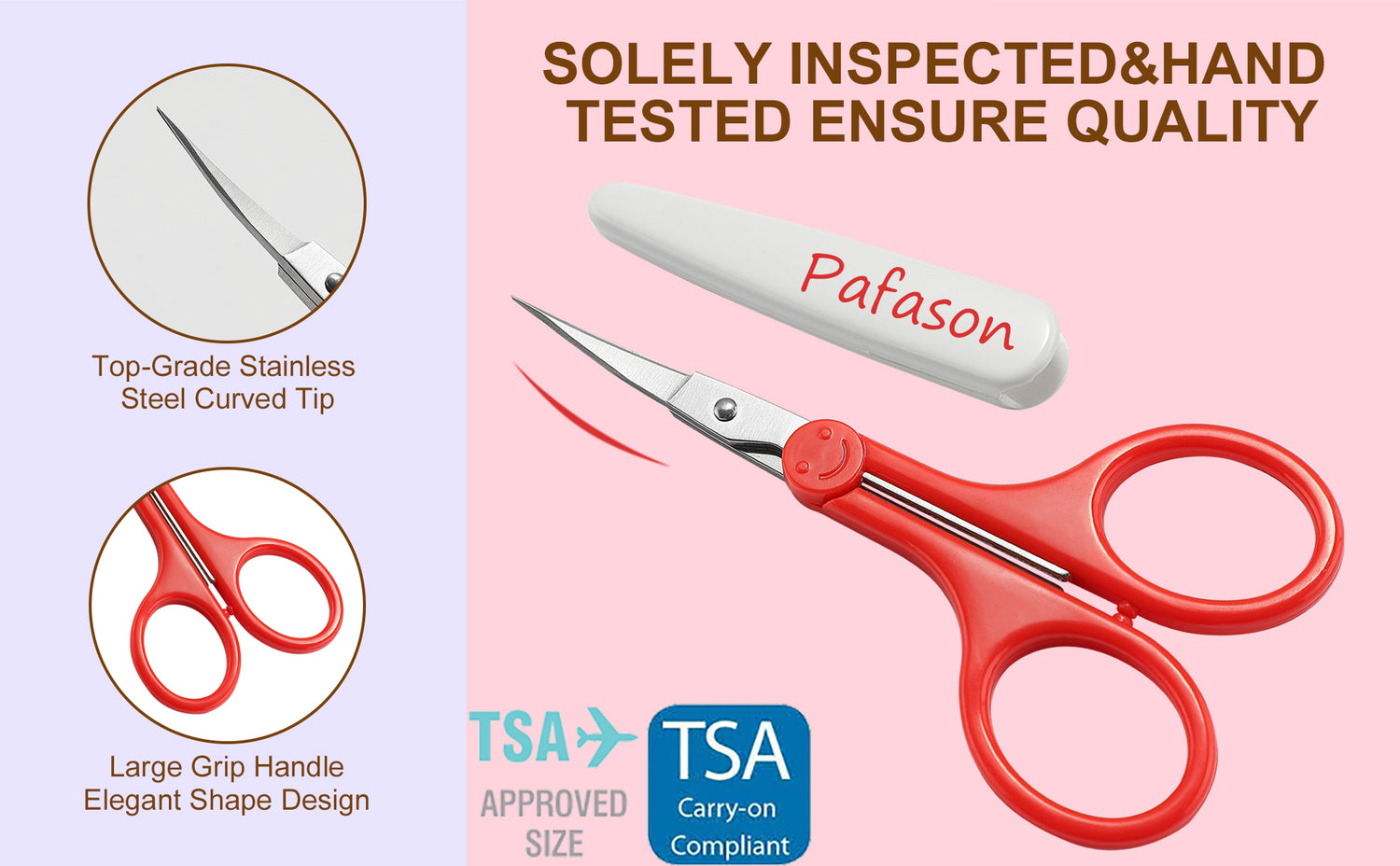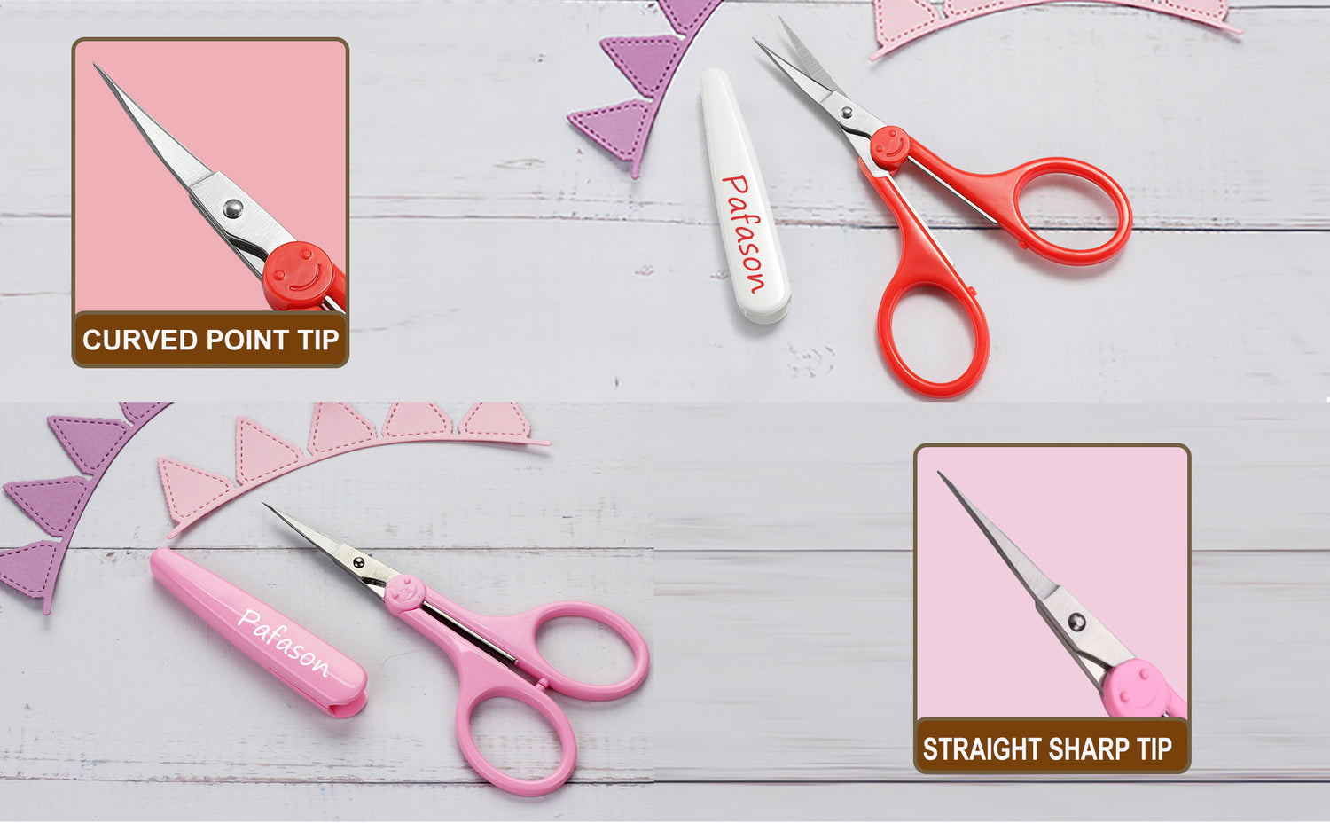 PAFASON 4" Stainless Steel Detail Craft Scissors Set with Straight & Curved Precise Tips & TSA Complied Ideal for Scrapbooking, Paper Yarn Thread Fabric Cutting Sewing Quilting Embroidery Knitting