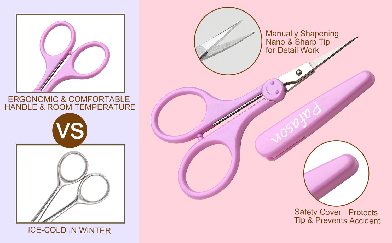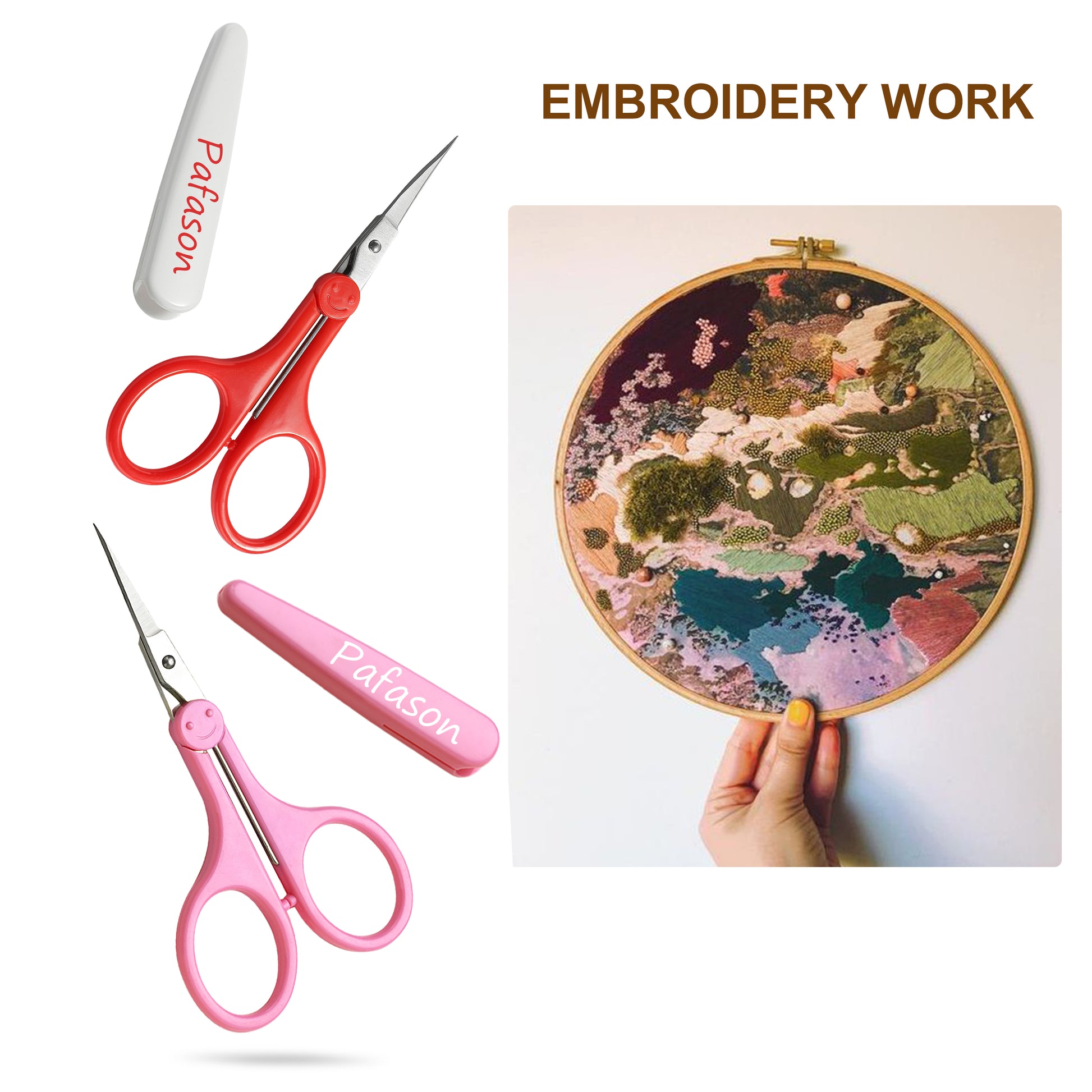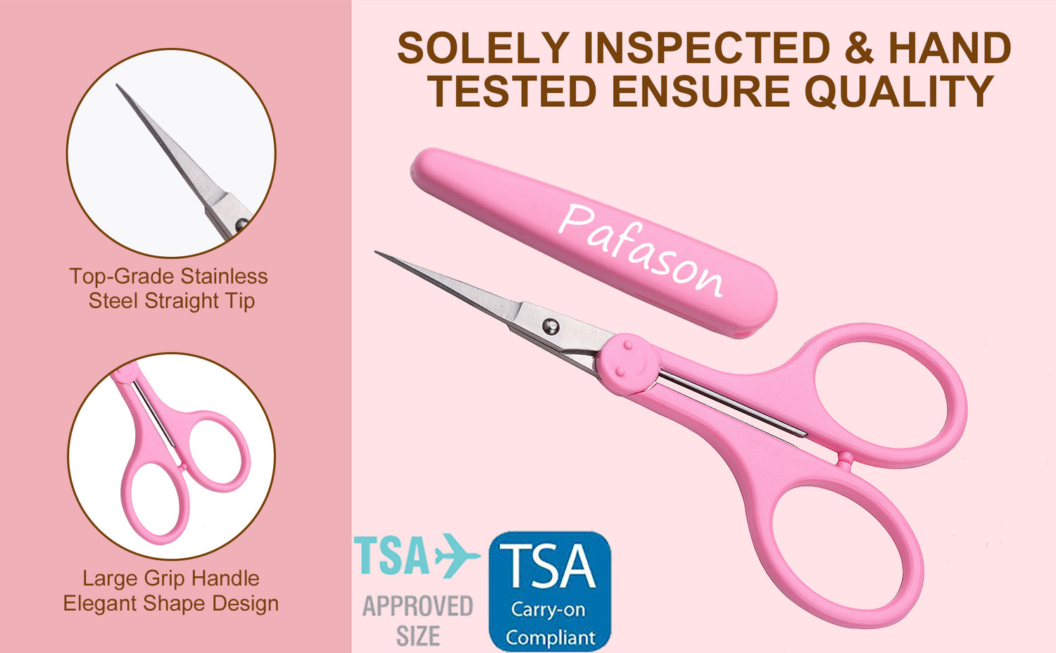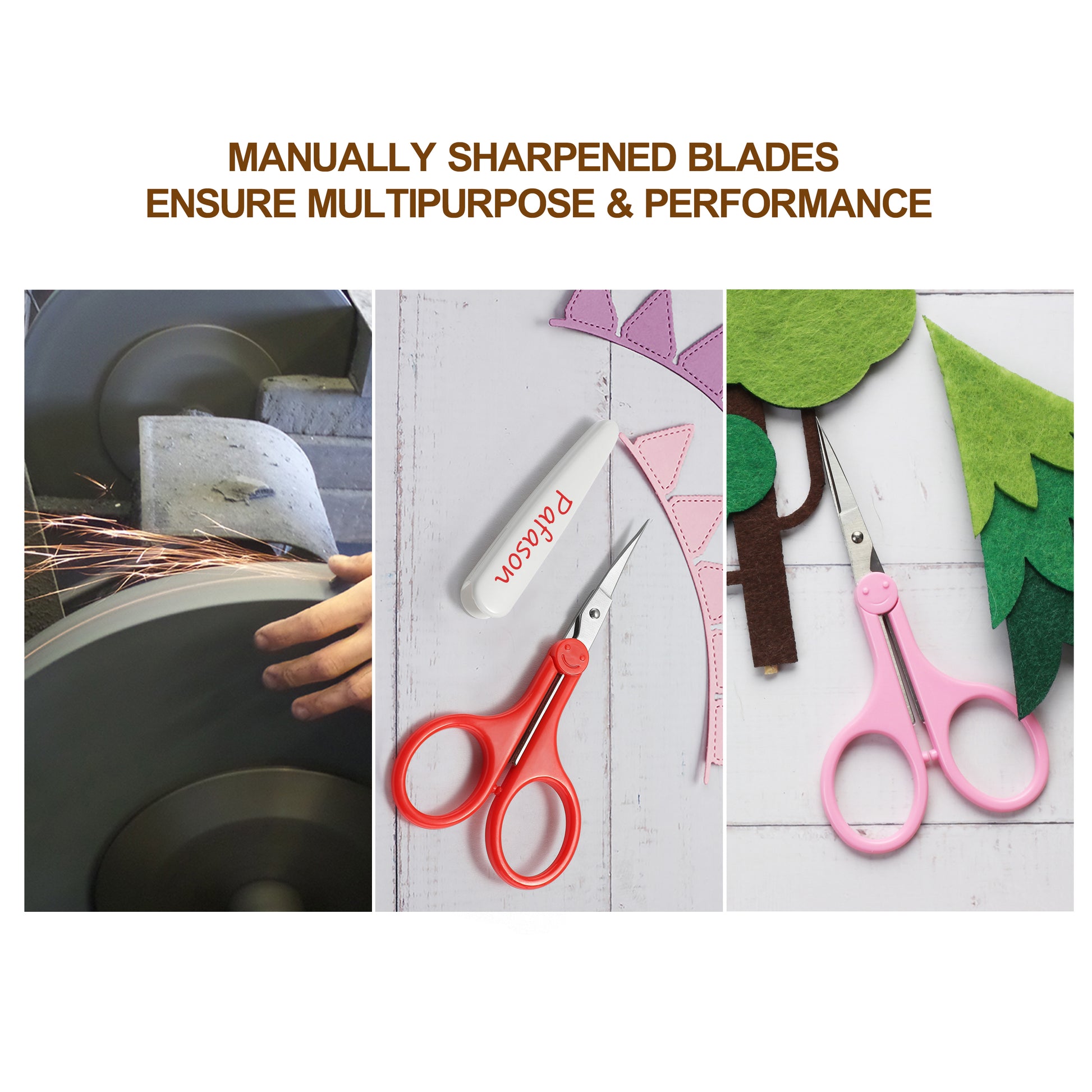 PAFASON 4" Stainless Steel Detail Craft Scissors Set with Straight & Curved Precise Tips & TSA Complied Ideal for Scrapbooking, Paper Yarn Thread Fabric Cutting Sewing Quilting Embroidery Knitting