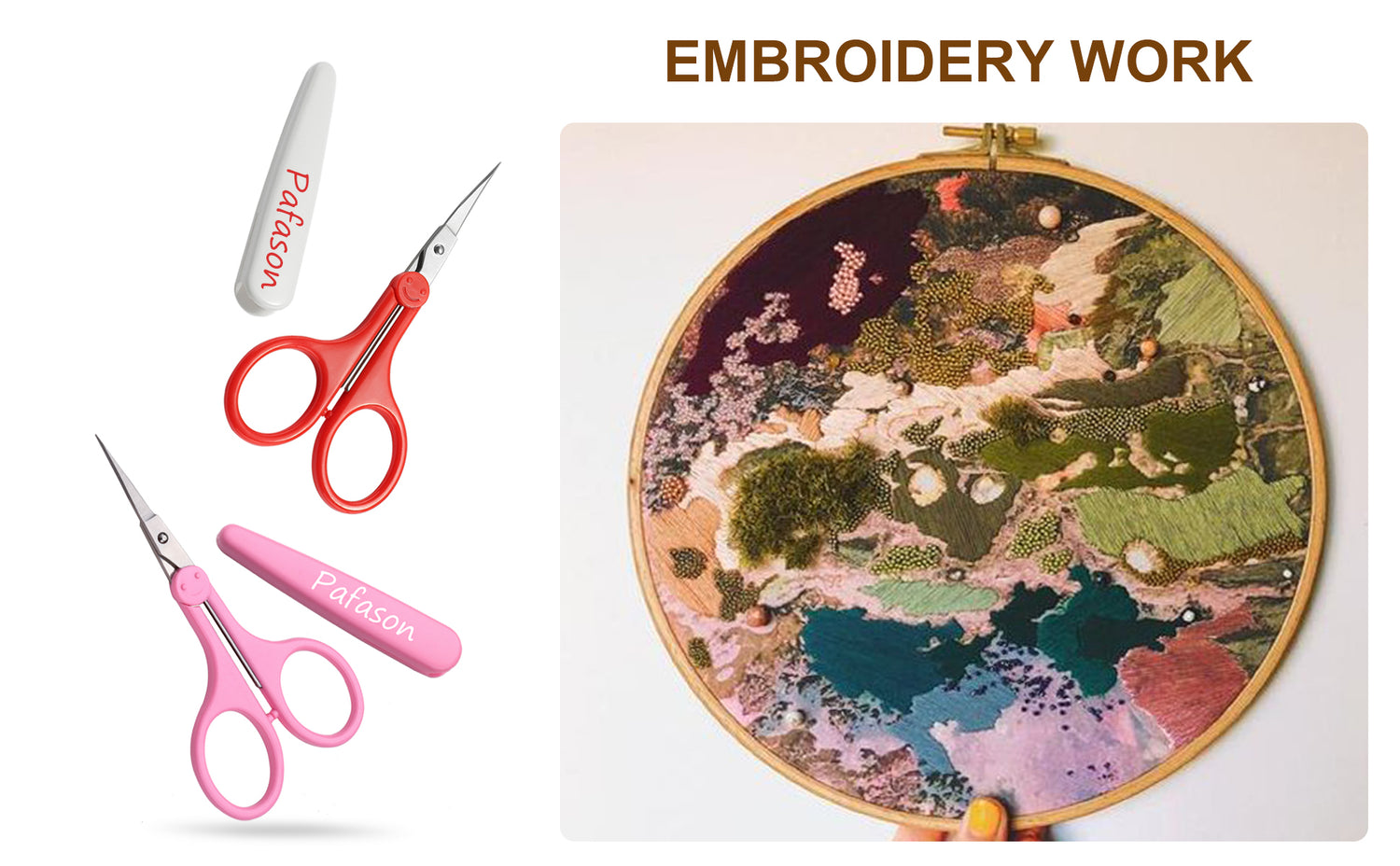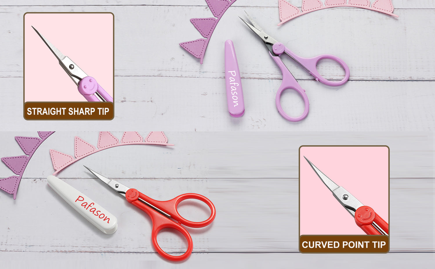 - Multipurpose – The crafting scissor set comes with two scissors, one has pointy straight tip and the other has pointy curved tip which are great for paper cutting, scrapbooking, and fine detail work, or art work.