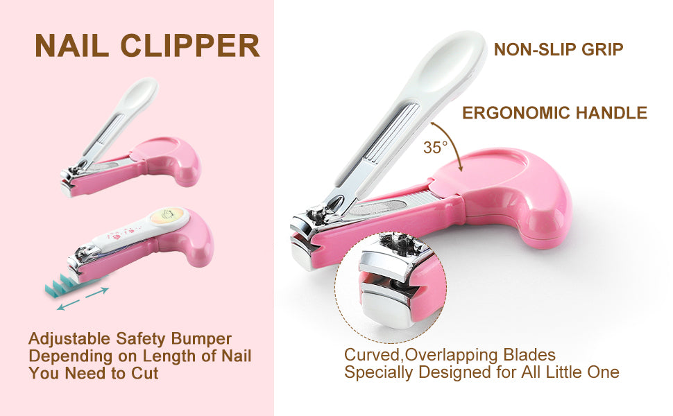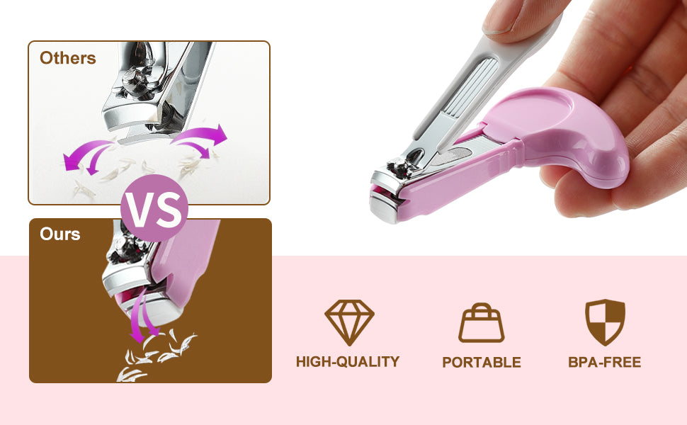 - The baby nail clipper comes with built-in nail catcher for collecting nail fragments that could be scatter around, and nail file for grinding off any sharp edge of the nail, so the baby won't scratch their skin.