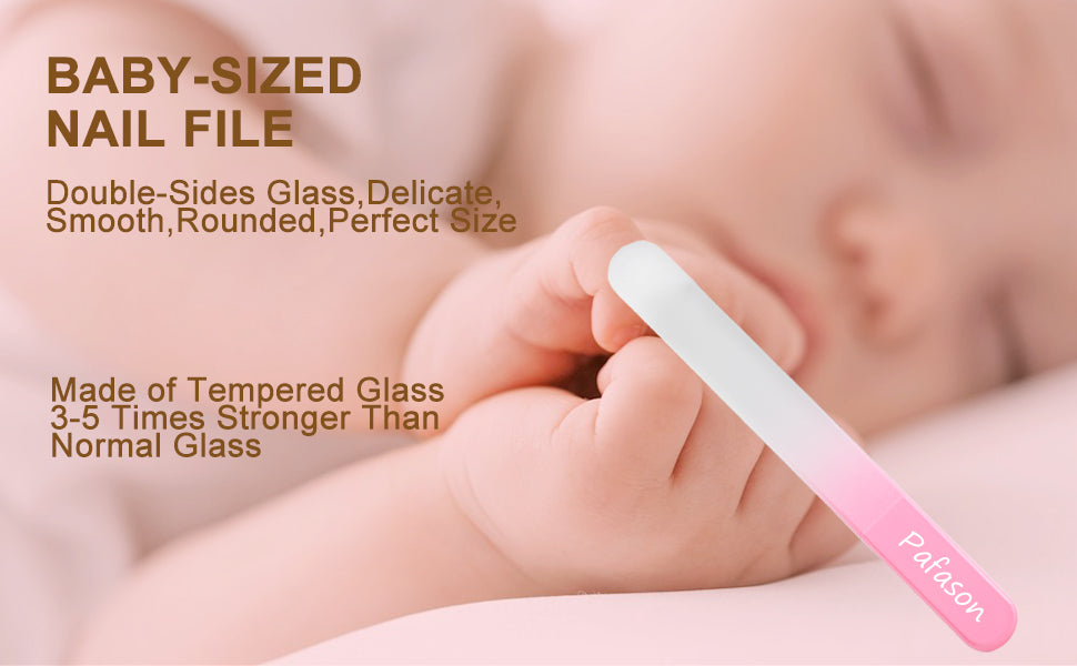 - Nail clipper is specially designed for trimming tiny finger and toe nails as the width of blade matches the width of finger and toe. Nail file is the easiest and safest way to keep your baby's nails blunt after using nail scissor. This baby glass nail file is safe to touch, delicate, smooth and rounded. No sharp or pointy edges.