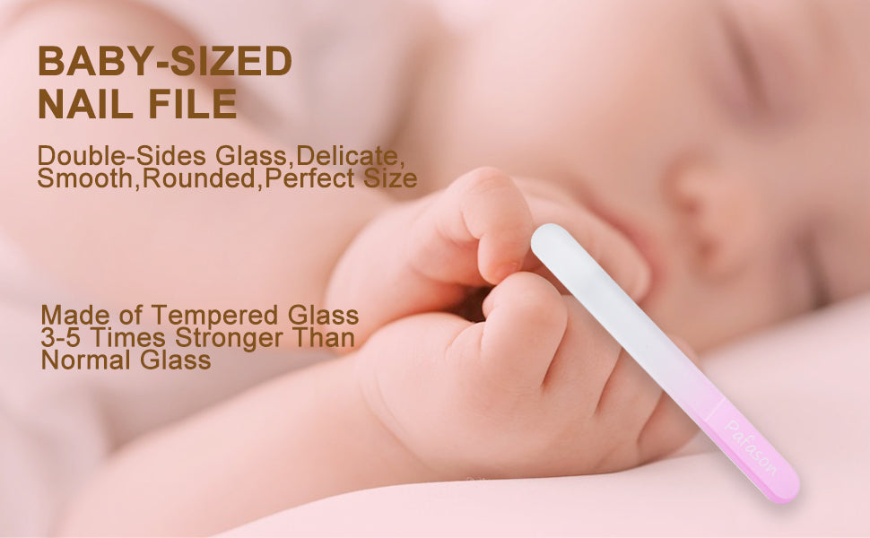 - Extra-large and ergonomic handle provides more comfortable, secure and steady grip for preventing accidental clipping or falling while using it. The baby glass nail file is made from Genuine Czech Float Glass of the finest quality that unlike traditional nail files are extremely long lasting & not easy to break, no need to replace frequently like other nail files.