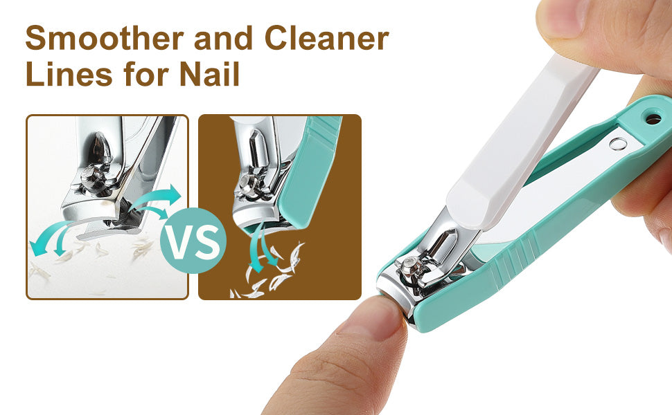 - Nail Catcher: both fingernail clipper and toenail clipper come with nail catcher that collects nail fragments after clipping. So there won't be any nail fragments hiding in the corner of furniture or on the floor, which need to be clean or vacuum.
