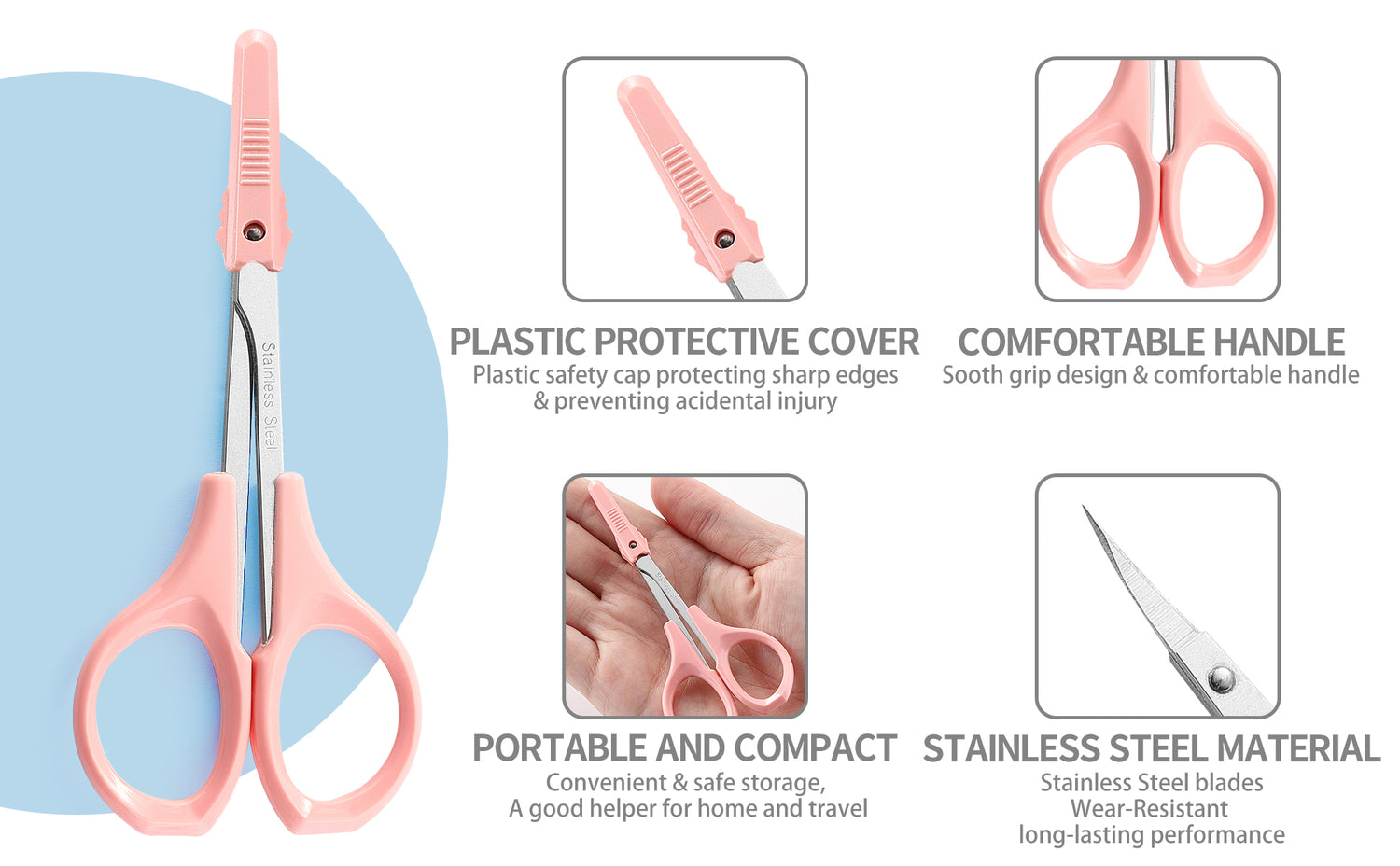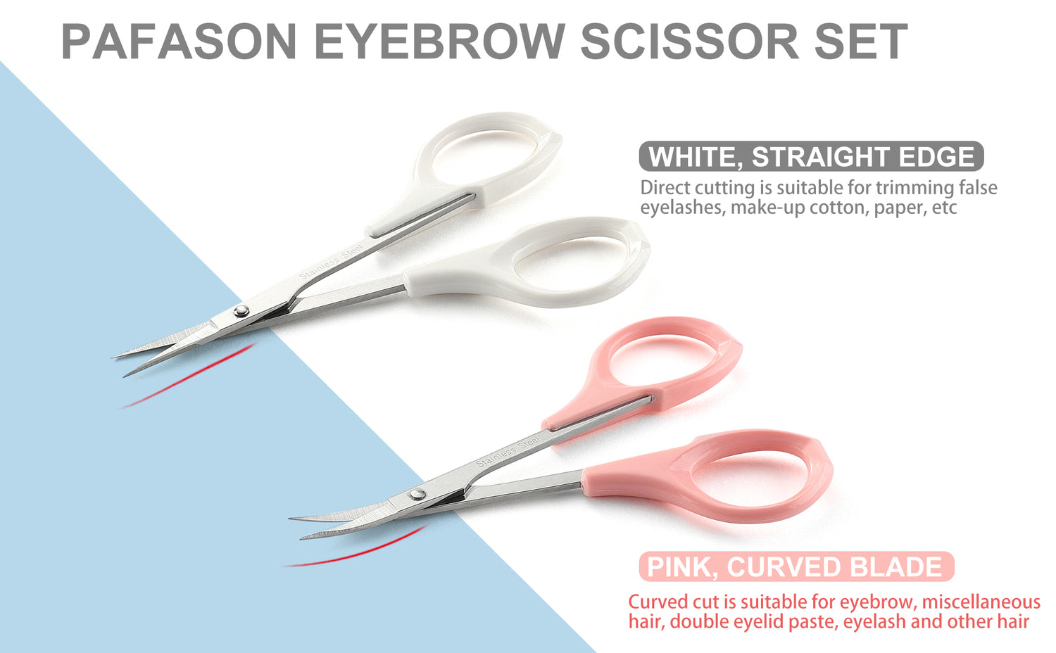 PAFASON Stainless Steel Curved and Straight Eyebrow Grooming Scissor Set with Safety Cover for Trimming Shaping Eyelash Extensions Eyebrow
