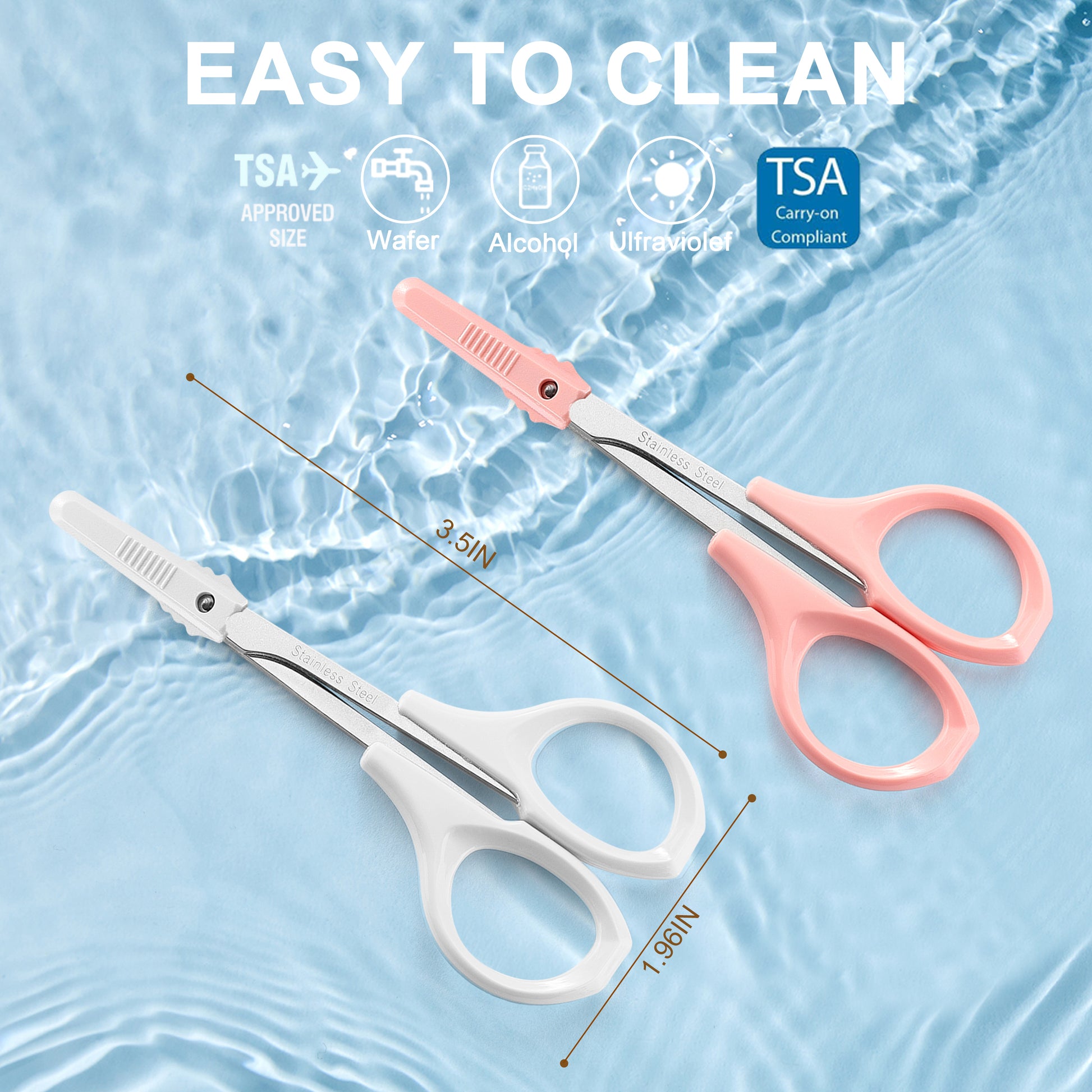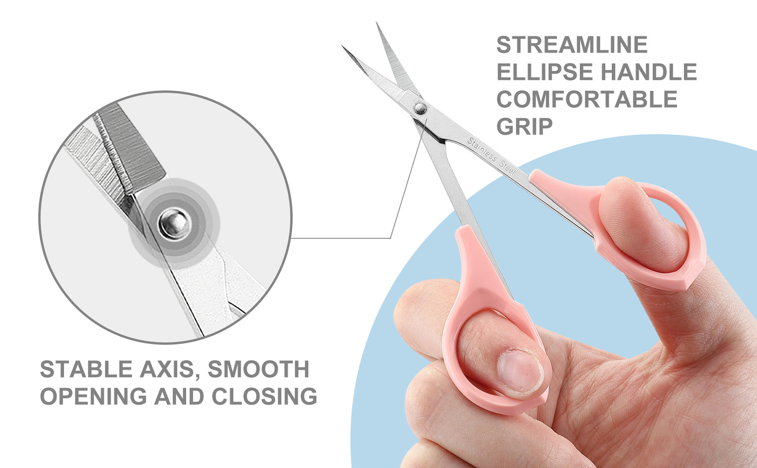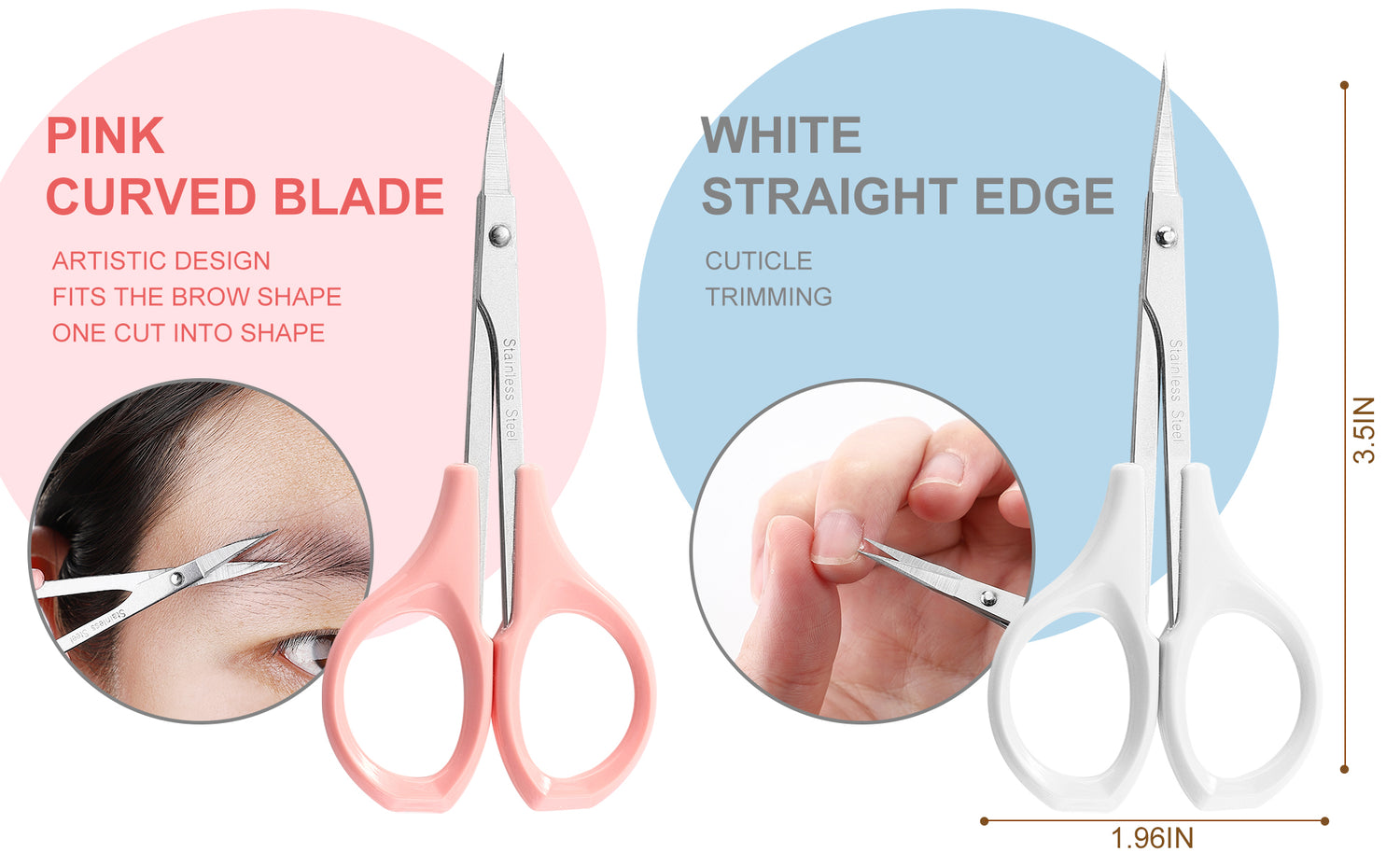 - Keeping your eyebrow shaping scissors in tip-top shape is easy; simply wipe away hair, rinse in warm water, and dry. Manufactured to the highest quality materials to make sure long lasting performance. Curve blade design provides extremely precise cutting from any angles and making them ideal for almost any kinds of daily grooming tasks.