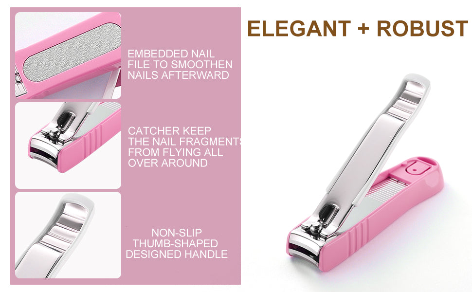 - Our nail clipper set, both fingernail clipper and toenail clipper come with nail catcher that collects nail fragments after clipping. So there won't be any nail fragments hiding in the corner of furniture or on the floor, which need to be clean or vacuum.